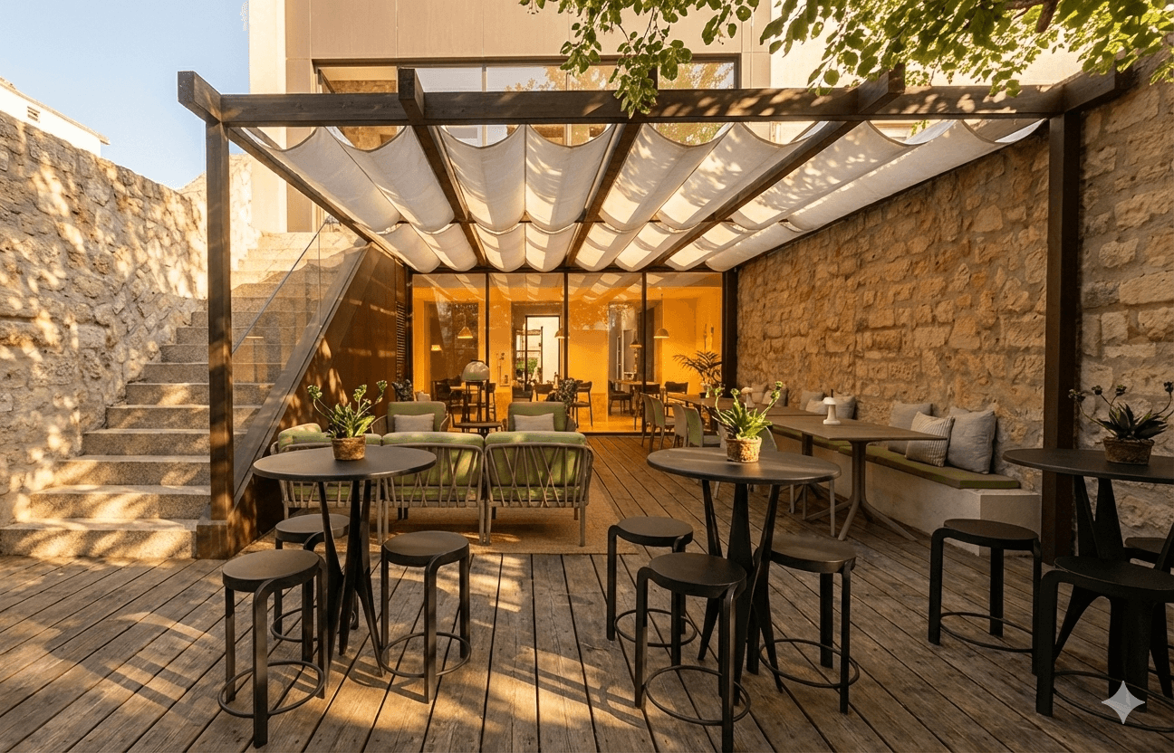 Redes, cadeiras confortáveis e vibes de jardim. O spot perfeito para chamadas ou fingir que trabalhas.